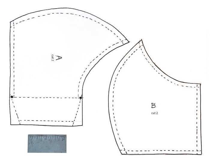 Você vai precisar de: dois retângulos de tecido de algodão (24cm x 19cm); duas peças de elástico; tesoura; alfinetes; agulha com linha e molde impresso. 1) Imprima o molde, recorte o desenho e coloque-o sobre os dois pedaços de tecido. Para segurar o molde, use os alfinetes; 2) faça a marcação com um lápis preto e depois recorte; 3) junte as duas partes e costure com linha e agulha, como se fosse um único pedaço de tecido. Lembre-se de deixar uma folga 2,5 cm em cada um dos lados mais curtos para inserir o elástico; 4) passe o elástico dentro da bainha e costure firmemente, para evitar que escorregue. Para ajudar nessa etapa, use uma agulha grande ou um grampo. Veja mais detalhes neste link.