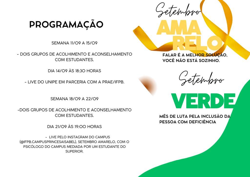 Dia 29/09 Live sobre o Setembro Amarelo e Setembro Verde com o psicólogo e psicopedagoga do campus;