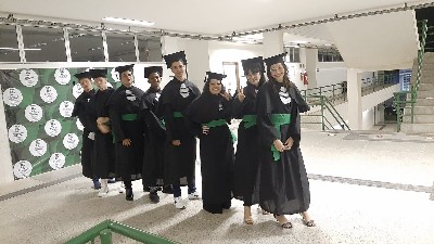 Os formandos dos cursos técnicos integrados de Meio-Ambiente, Multimídia e Recursos Pesqueiros foram apresentados nominalmente aos presentes, ao entrarem no auditório devidamente paramentados com suas becas e capelos de concluintes.