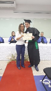 Compondo também a mesa de honra da cerimônia de certificação estavam o Pró-Reitor de Ensino, Neilor Cesar dos Santos; a Diretora de Desenvolvimento de Ensino, Ana Lígia Chaves Silva e o representante da Diretoria de Administração, Planejamento e Finanças, Michael David Macedo.