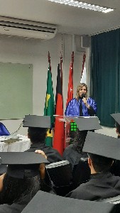 Diante das coordenadoras dos cursos de Meio-Ambiente, professora Rebeca Vinagre Farias; do curso de Multimídia, professora Jeane de Freitas Azevedo; e do curso de Recursos Pesqueiros, professora Joana Angélica de Carvalho, os oradores de cada turma discursaram e prestaram homenagens aos seus paraninfos.