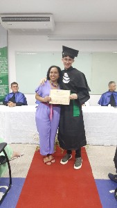 Ao homenagear a professora Luciana Trigueiro de Andrade, o orador do curso técnico em Recursos Pesqueiros, Sávio Henrique Carvalho Lacerda, agradeceu lembrando uma de suas recomendações: desejo a todos uma boa vida. “Uma frase dita de modo simples e natural a partir do encerramento da última aula de seu curso, mas que nos fez refletir de onde começamos e até aonde iremos”, disse o concluinte.
