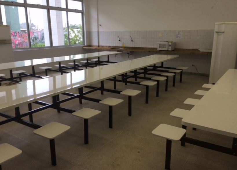 Mesmo sem estrutura definitiva de Restaurante Estudantil, foi montado um espaço de refeitório com capacidade para 50