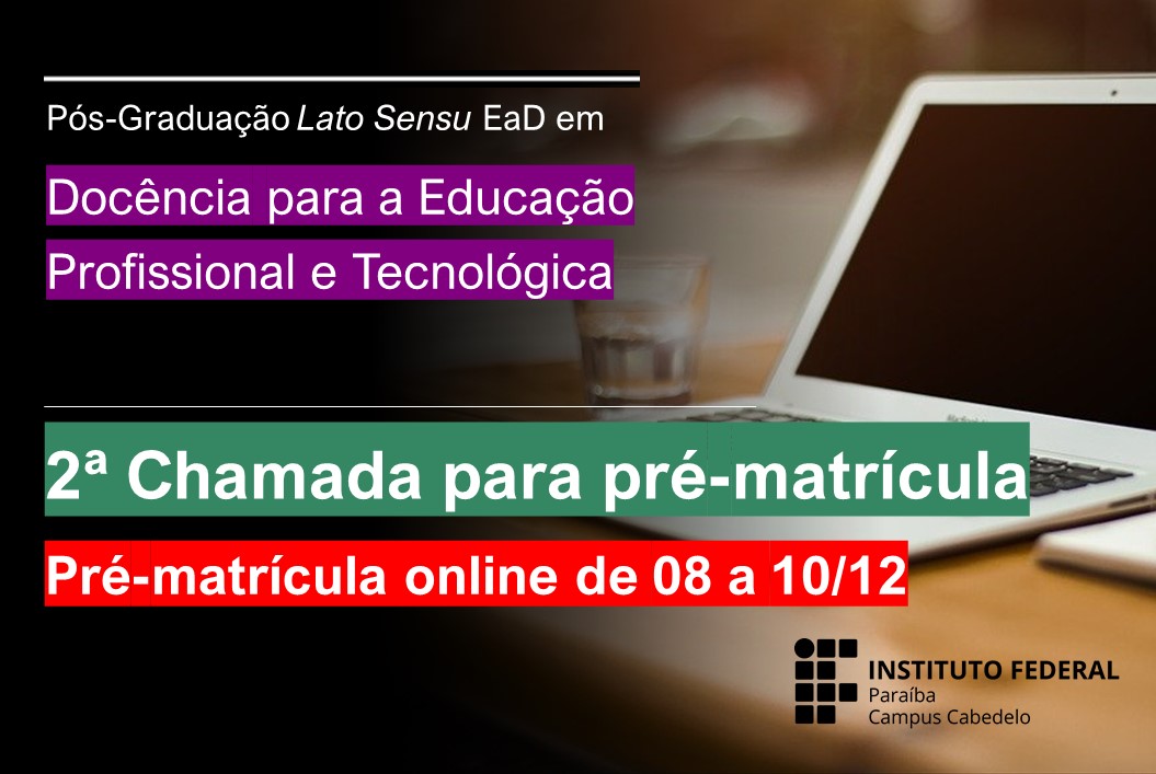 Campus Cabedelo publica edital de 2ª chamada para pré-matrícula da Especialização em Docência para a Educação Profissional e Tecnológica (EAD)
