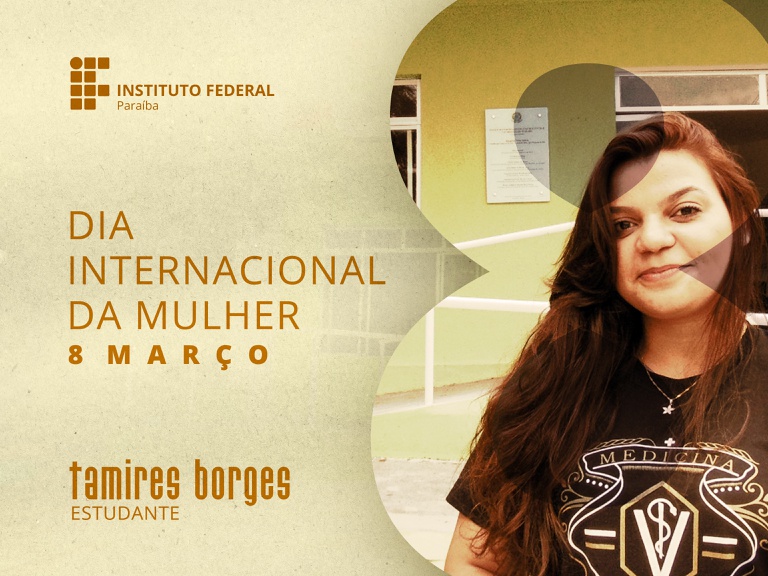 Confira também a mensagem do Reitor do IFPB, professor Nicácio Lopes, alusiva ao Dia Internacional da Mulher. A mensagem faz referência à trajetória da estudante egressa do Curso Técnico em Meio Ambiente Integrado ao Ensino Médio do Campus Cabedelo, e atual estudante do Curso de Medicina Veterinária do Campus Sousa, Thamires Borges.