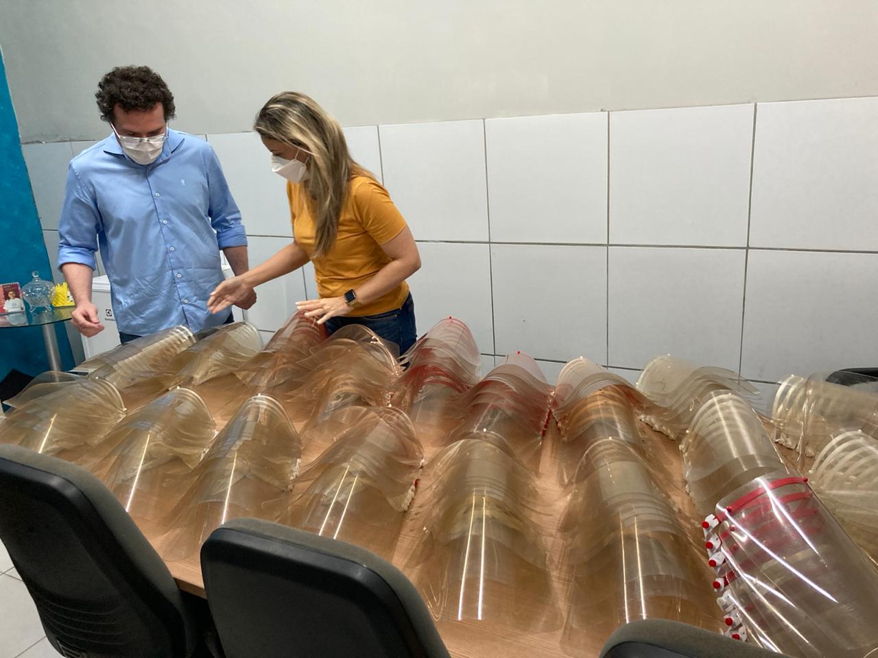 Protetores faciais do tipo faceshield foram produzidos pelo Polo de Inovação do IFPB e seguem o padrão desenvolvido pelo LT3D/NUTES/UEPB