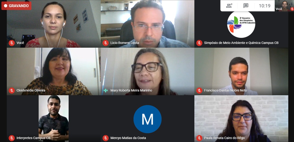 Em seguida, houve a realização da atividade síncrona relacionada ao IV Simpósio de Meio Ambiente e Química da Paraíba. O IV SIMAQ, um dos três eventos que compõe o 3º Encontro dos Simpósios do IFPB Campus Cabedelo, tem a proposta de divulgar a produção técnico-científica oriunda dos processos e projetos de Ensino, Pesquisa, Inovação e Extensão, de práticas profissionais dos cursos técnicos em Meio Ambiente e Química do Campus Cabedelo, bem como agregar demais produções de instituições parceiras federais, municipais e estaduais. A atividade envolveu a realização da Mesa Redonda intitulada "Impactos socioambientais e a relevância dos profissionais da área no enfrentamento à pandemia", e contou com a participação da professora Dr.ª Patrícia Marinho Abreu (UFCG), do professor Matheus Dias dos Santos (SEECT/EPSCR) e do bacharel Wesley Victor de Oliveira, técnico do LACEN-PB e UNIESP.