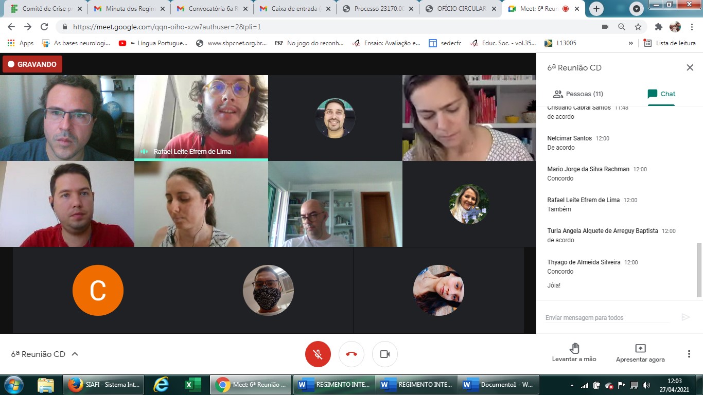 Na última terça-feira, o Conselho Diretor do Campus Cabedelo realizou sua primeira reunião ordinária do ano 2021, abordando temas importantes como calendários acadêmicos e a criação de novos cursos. A 6º reunião ordinária do Conselho Diretor ocorreu por meio de webconferência, através da plataforma Meet.