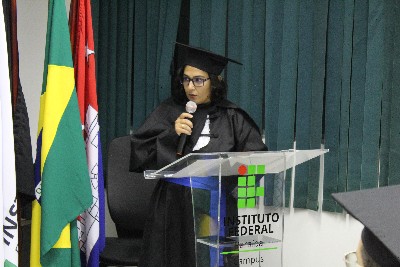 A concluinte Jordânia Pereira Firmino, do Curso de Tecnologia em Design Gráfico, foi a oradora de seu curso, e fez um relato de sua caminhada para chegar à graduação. Os problemas, as dificuldades e a superação dos obstáculos. “Nós, estudantes do Curso de Design Gráfico, fizemos história dentro do IFPB, lutamos para melhorar a experiência dos estudantes dentro dessa Instituição”, lembrou, agradecendo a todos os que ajudaram os estudantes a chegarem até aquele momento.