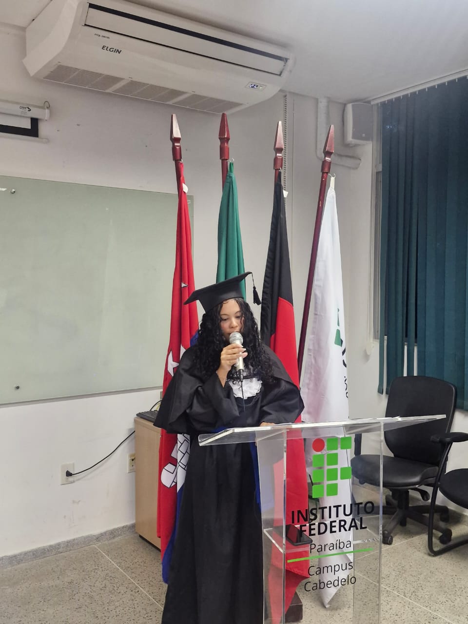 “Em nome de todos os formandos, gostaria de agradecer à instituição de ensino por nos proporcionar esta oportunidade de crescimento e desenvolvimento. Que o legado deste curso perdure por gerações, inspirando outras a perseguirem seus sonhos e alcançarem seus objetivos”, afirmou a oradora do Curso Técnico em Química, Beatriz de Souza Silva, que foi acompanhada pelas oradoras Mayara Sinésio dos Santos, do Curso Técnico em Panificação, e Suylane Barbalho de Lima Silva, do Curso Técnico em Meio Ambiente. Ambas destacaram também as dificuldades para se chegar ao final do curso e como o IFPB agiu como família, incentivando a resiliência para que não desistissem no meio da jornada.