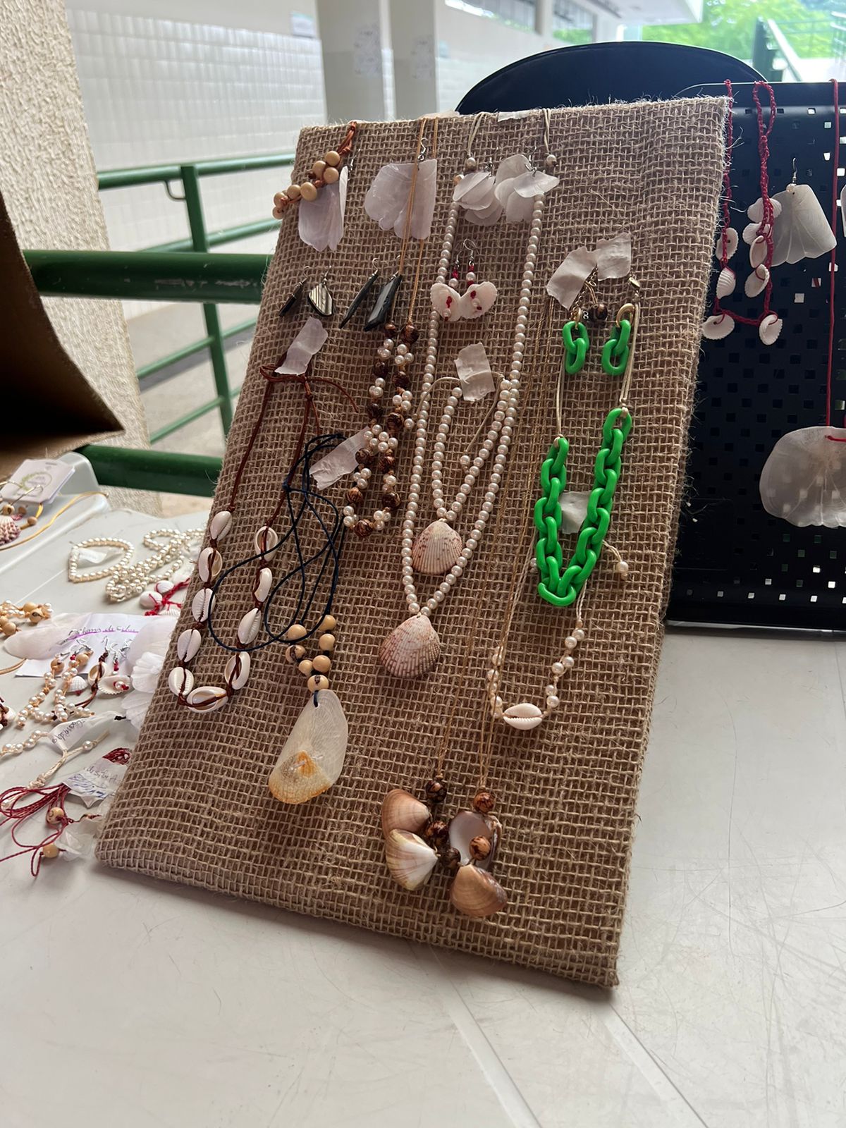 que apresentaram em exposição no Campus peças produzidas durante a capacitação. Biojoias, que também podem ser conhecidas como ecojoias ou joias naturais, são acessórios desenvolvidos a partir de materiais orgânicos disponíveis na natureza.