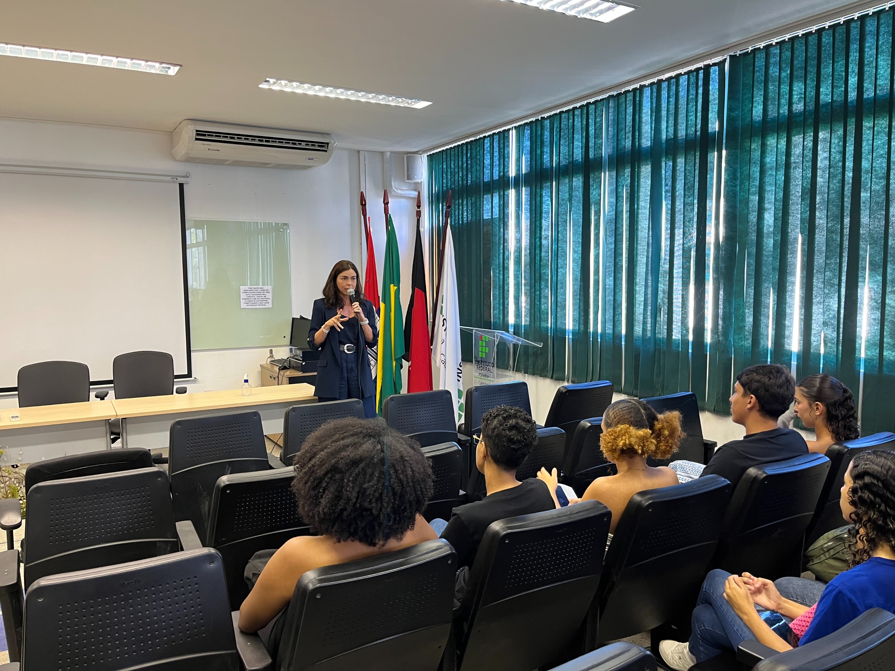 Em palestra para estudantes e servidores do IFPB Campus Cabedelo, a Promotora de Justiça Caroline Freire Monteiro da Franca divulga a prevenção e o combate à criminalidade