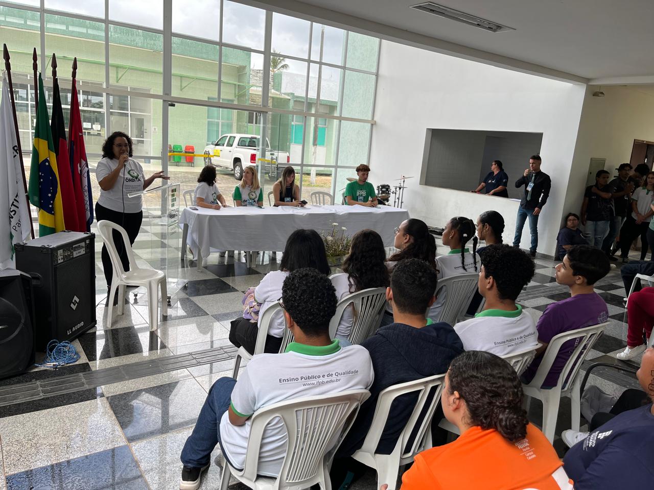 Participando da mesa de abertura, também estiveram presentes a Diretora-Geral, professora Turla Alquete; a Diretora de Desenvolvimento de Ensino, professora Ana Lígia Chaves Silva; a Coordenadora dos Cursos Técnicos, professora Andressa de Araújo Porto Vieira e o presidente do Grêmio Estudantil, o estudante Fabiano Lacerda.