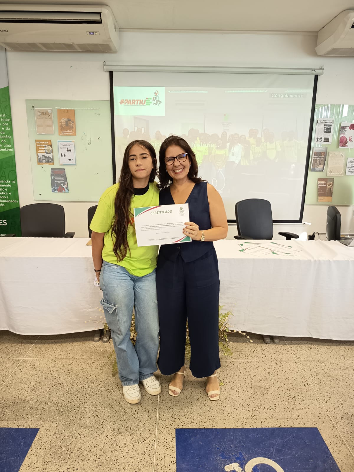 A Diretora de Desenvolvimento de Ensino, em exercício, professora Andressa Vieira, que presidiu a cerimônia, agradeceu a participação de todos no Programa, em especial do apoio institucional do professor José Elber Marques Barbosa, da Psicopedagoga Rosicleia Monteiro e do apoio pedagógico da Assistente Social Kelly Samara. Ela lembrou de sua própria trajetória, como aluna do Curso de Edificações. “Eu participava de tudo o que a Escola me proporcionava. Tudo valeu muito a pena!”, lembrou.
