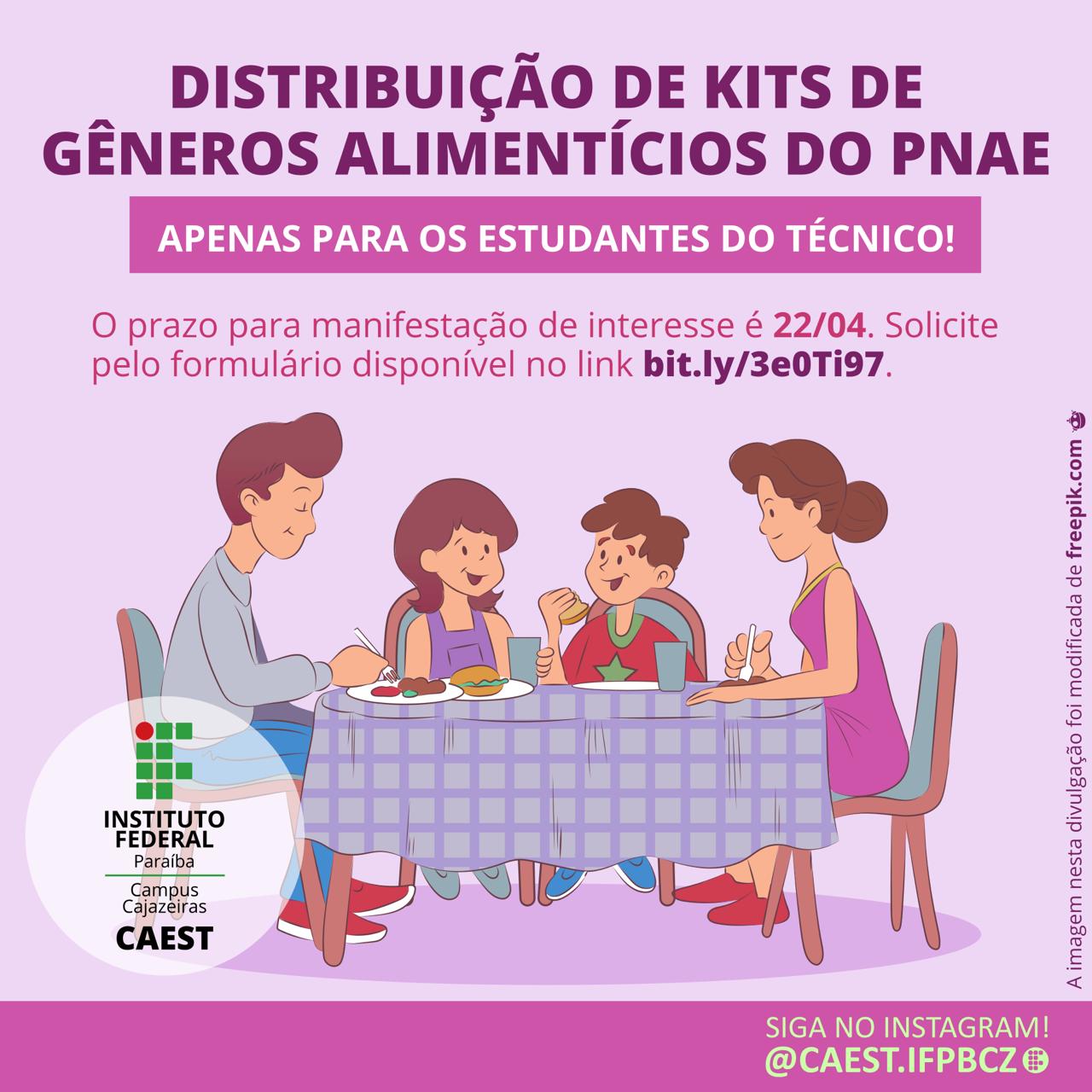 Aberta chamada interna para distribuição de Kits de gêneros alimentícios do PNAE