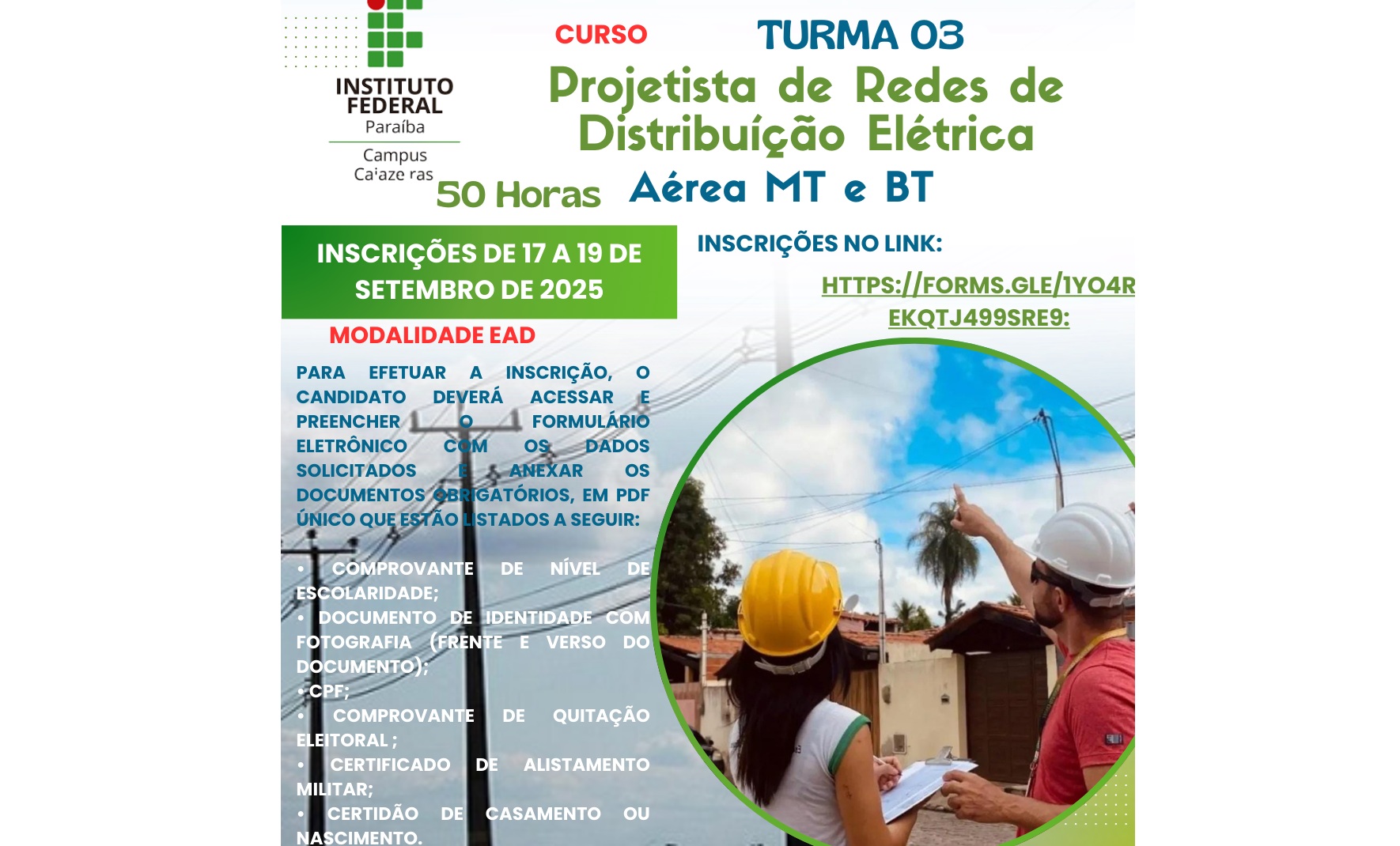 Campus Cajazeiras oferta Curso de Projetista de Distribuição Elétrica, na modalidade EaD