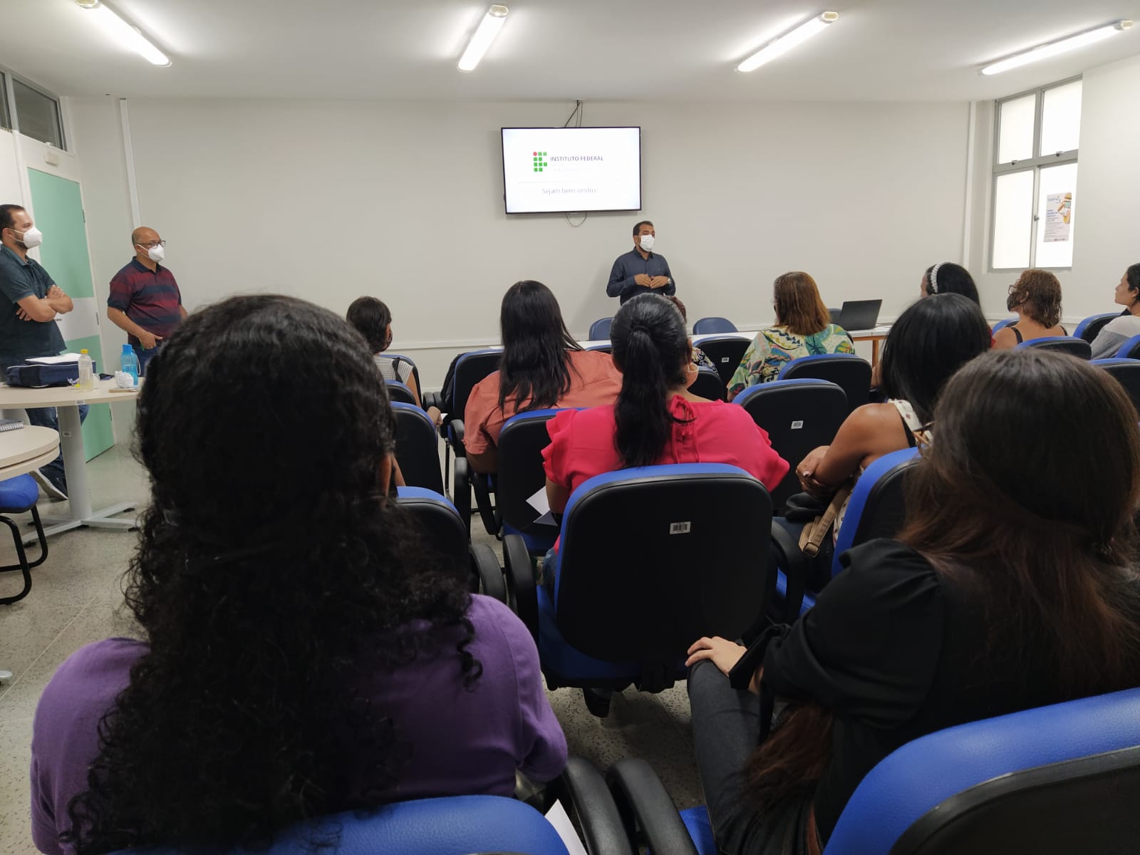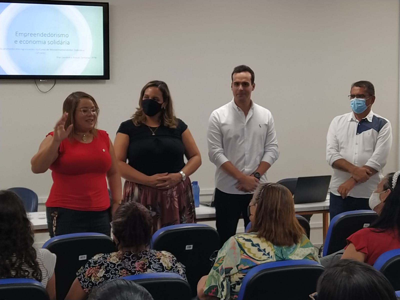 O coordenador Evaldo informou que as primeiras turmas têm 120 estudantes, a maioria mulheres, divididos em três turmas, uma em cada turno. Evaldo destacou o grande interesse das turmas pelo curso. Nesta segunda-feira, a primeira atividade foi uma palestra sobre Empreendedorismo e Economia Solidária, ministrada pela professora Laudiceia Araújo Santana. Eles tiveram ainda orientações sobre o curso.