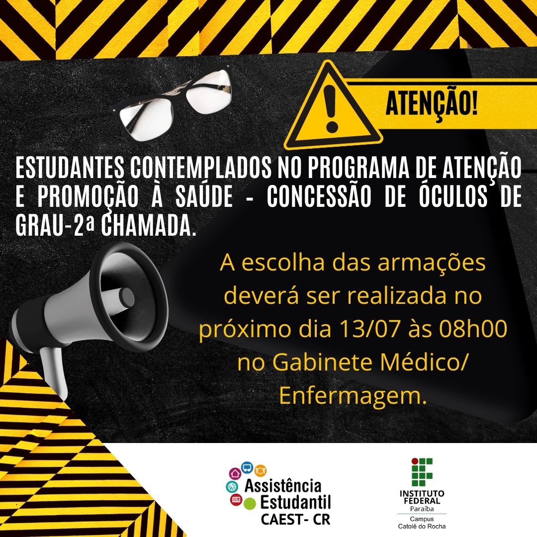 Estudantes contemplados no Programa de Atenção e Promoção à Saúde - Concessão de Óculos de Grau - 2º chamada