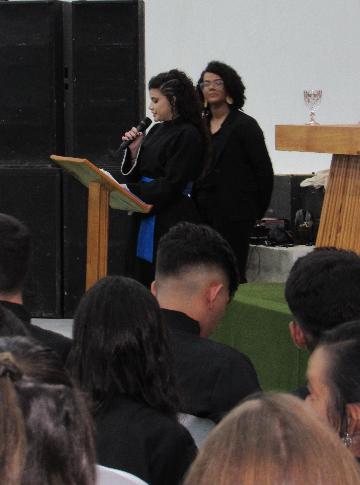 O padrinho das turmas, professor Jaime Luiz Bezerra do Nascimento, destacou em seu discurso que a educação é uma jornada contínua. “Vocês agora têm nas mãos o conhecimento e as habilidades para dar a sua contribuição para o mundo do trabalho e para a sociedade. Lembrem-se de que o verdadeiro significado do sucesso vai além de títulos e conquistas materiais. É sobre contribuir para algo maior, ser agente de mudança e inspiração para os outros. Cada um de vocês tem um papel único a desempenhar no lugar onde a vida os plantar, e estou confiante de que vocês hão de brilhar, com ética e paixão”, declarou o professor de Língua Portuguesa.