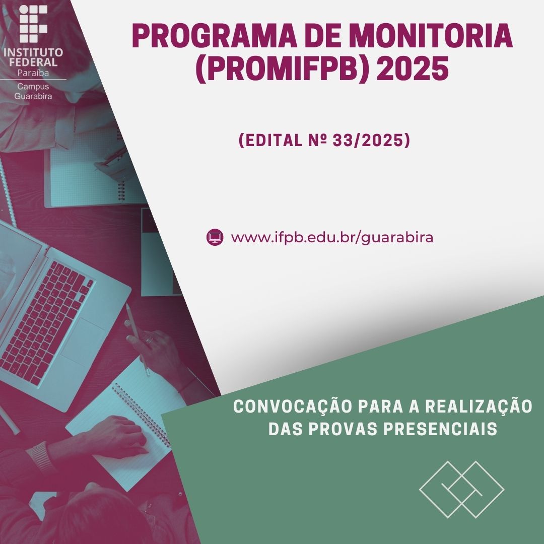 Divulgada a relação final de inscritos para o Programa de Monitoria ( PROMIFPB 2025) do IFPB campus Guarabira