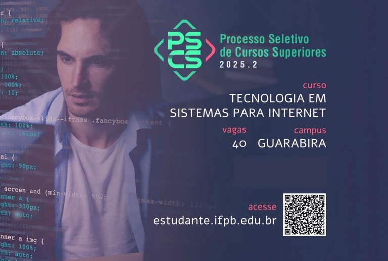 Campus Guarabira lança edital de manifestação de interesse no preenchimento de vagas remanescentes do curso superior de Tecnologia em Sistemas para Internet do PSCS 2025.2