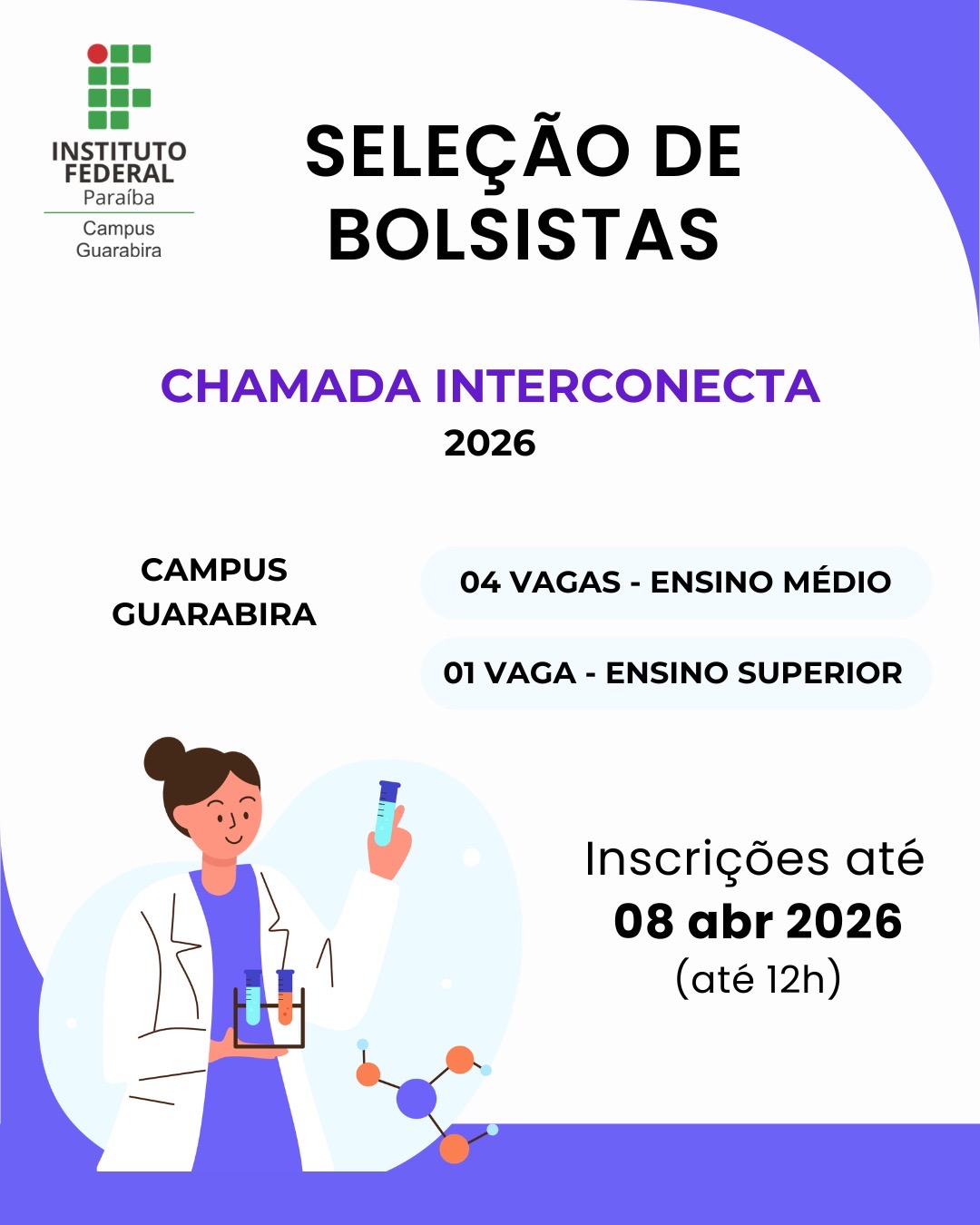Campus Guarabira publica Edital para Seleção de bolsistas da Chamada Interconecta 2026