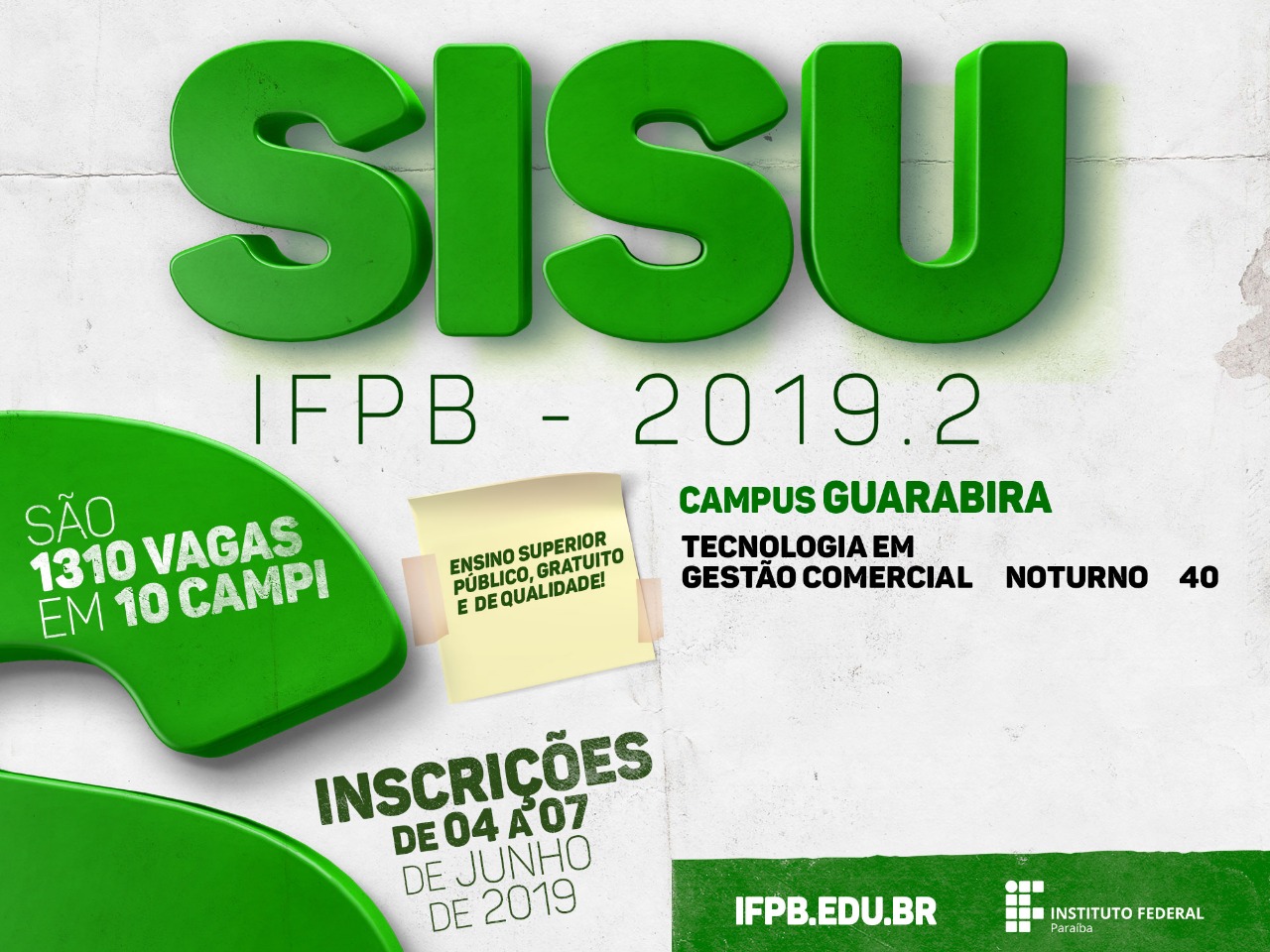 Sisu 2019.2: IFPB Guarabira divulga vagas ofertadas