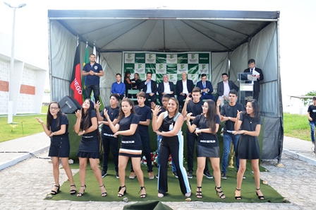 A solenidade de inauguração do campus prosseguiu com a apresentação do Coral de Libras, o corte oficial da fita de inauguração e o descerramento da placa.