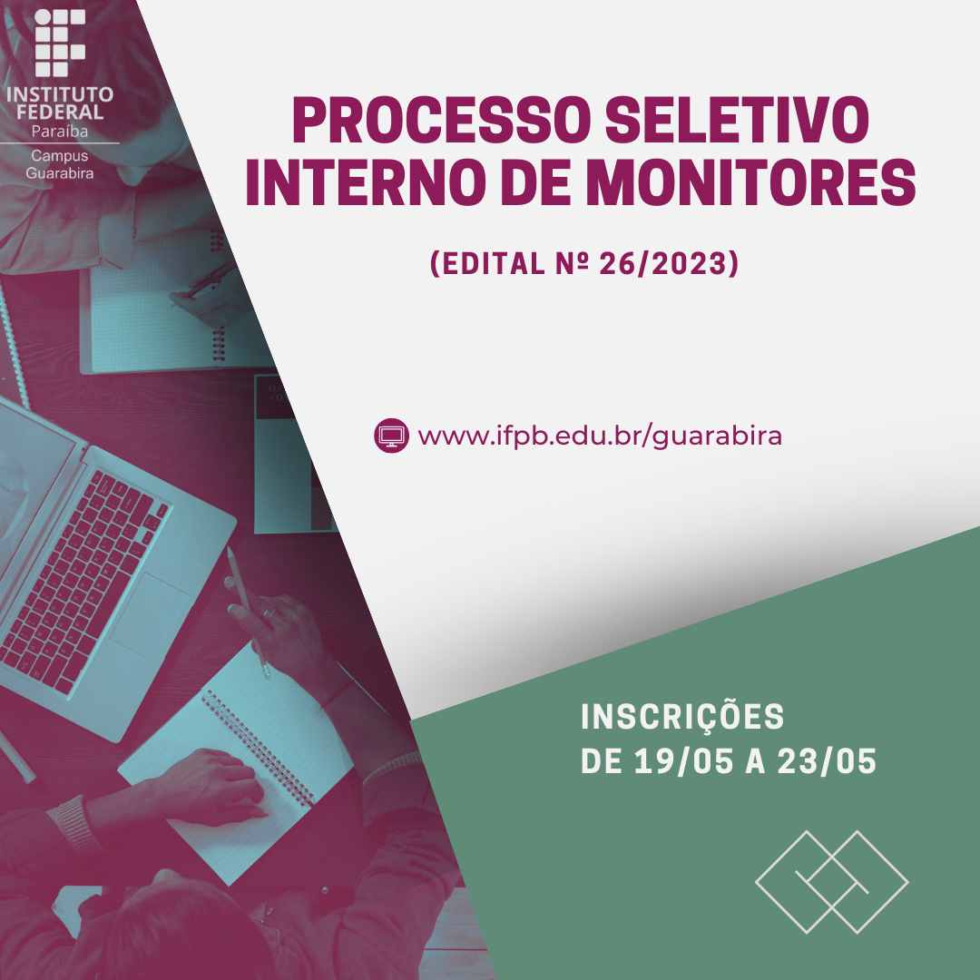 As vagas ofertadas são destinadas a discentes do sexo masculino e feminino, dos cursos do IFPB Campus Guarabira.