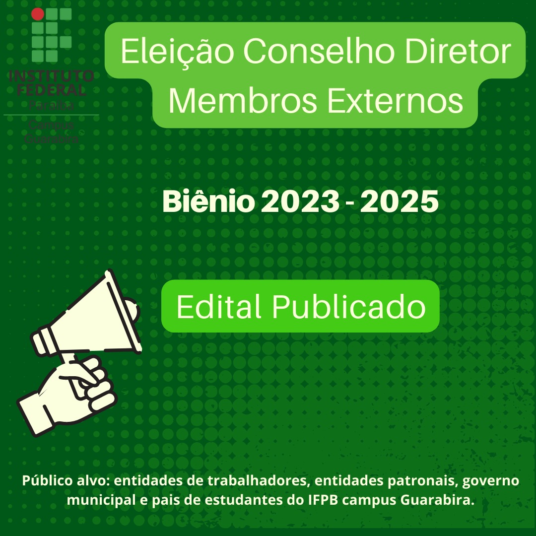 Campus Guarabira divulga Edital para escolha dos membros da comunidade externa do Conselho Diretor para o biênio 2023 - 2025