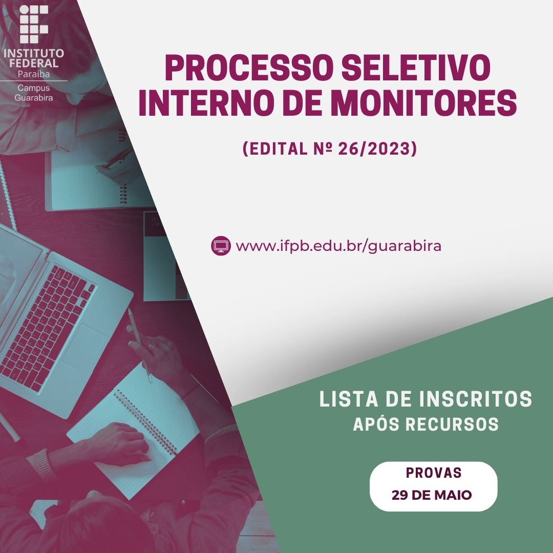 Campus Guarabira divulga Lista de Inscritos do processo seletivo interno de monitores