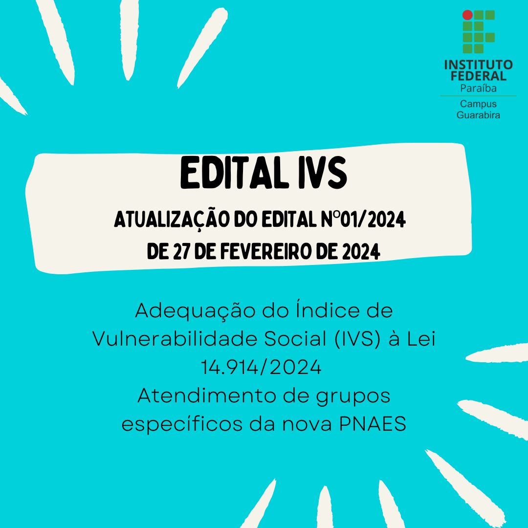 Campus Guarabira divulga a chamada para Edital nº 01/2024 de Adequação do Índice de Vulnerabilidade Social (IVS)