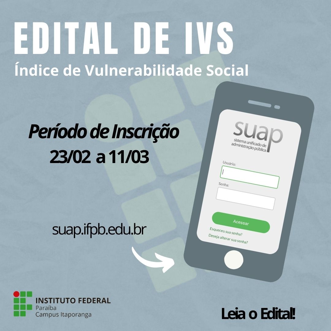 IFPB Campus Itaporanga divulga Edital para definição do Índice de Vulnerabilidade Social (IVS)