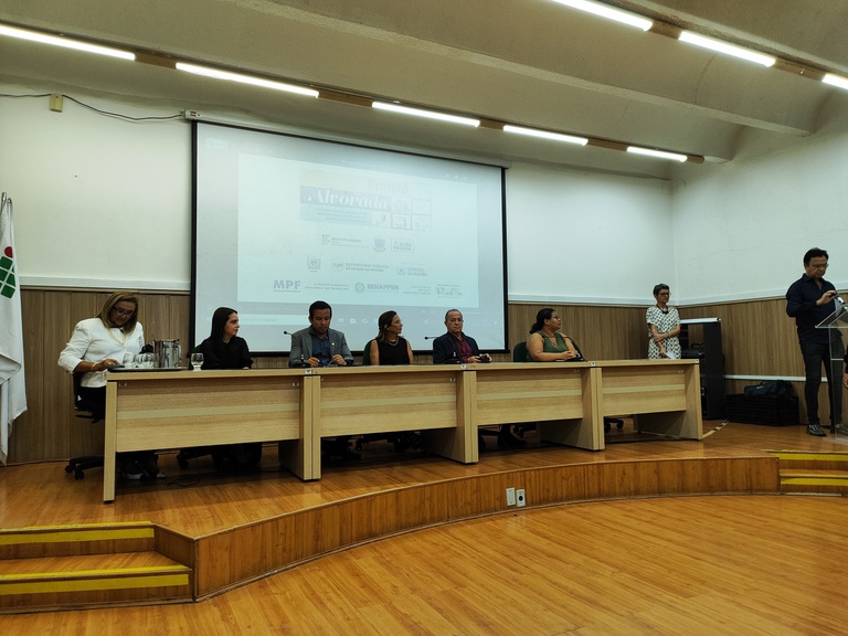 A mesa de honra teve as presenças da juíza da Vara de Execuções Penais da capital, Andréa Arcoverde; do secretário estadual de Administração Penitenciária, João Alves; da Gerente Executiva do Escritório Social da Paraíba, Anna Paula dos Santos; da pró-reitora de Extensão e Cultura, Josi Batista (representando a reitora Mary Roberta); do diretor geral do campus João Pessoa, Ricardo Ferreira; da defensora pública Waldelita Cunha Farias, e do coordenador do Alvorada no IFPB, Franklin Garcia Figueiredo.