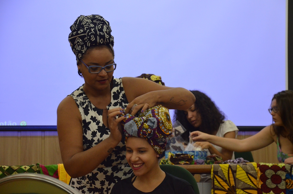 A turbanteira e comunicóloga, Andrea Lopes, falou como realizou uma pesquisa sobre o uso do turbante, a origem dos tecidos, formas geométricas e como cada região da África utiliza e fabrica esse adereço que possui diversas significações. "No Brasil não tem muita literatura sobre turbante. A partir do meu TCC construí uma série de programas de rádio, um portal, cursos e palestras", disse Andrea.