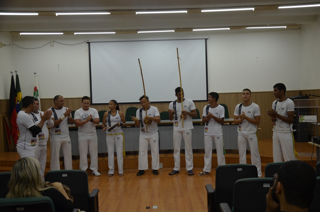 Para finalizar as atividades, os presentes no evento se uniram aos integrantes do Grupo Candeias e participaram de uma grande Roda de Capoeira no pátio do Campus João Pessoa.