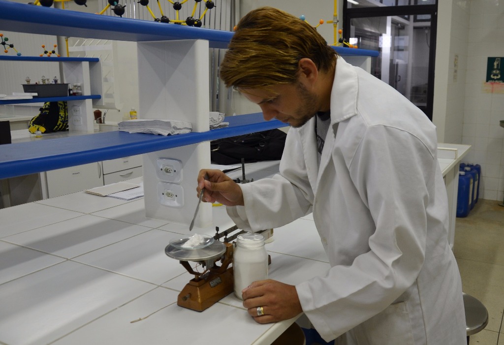 Leonardo Xavier, aluno da Licenciatura em Química, desenvolveu uma metologia para uso de balança adaptada