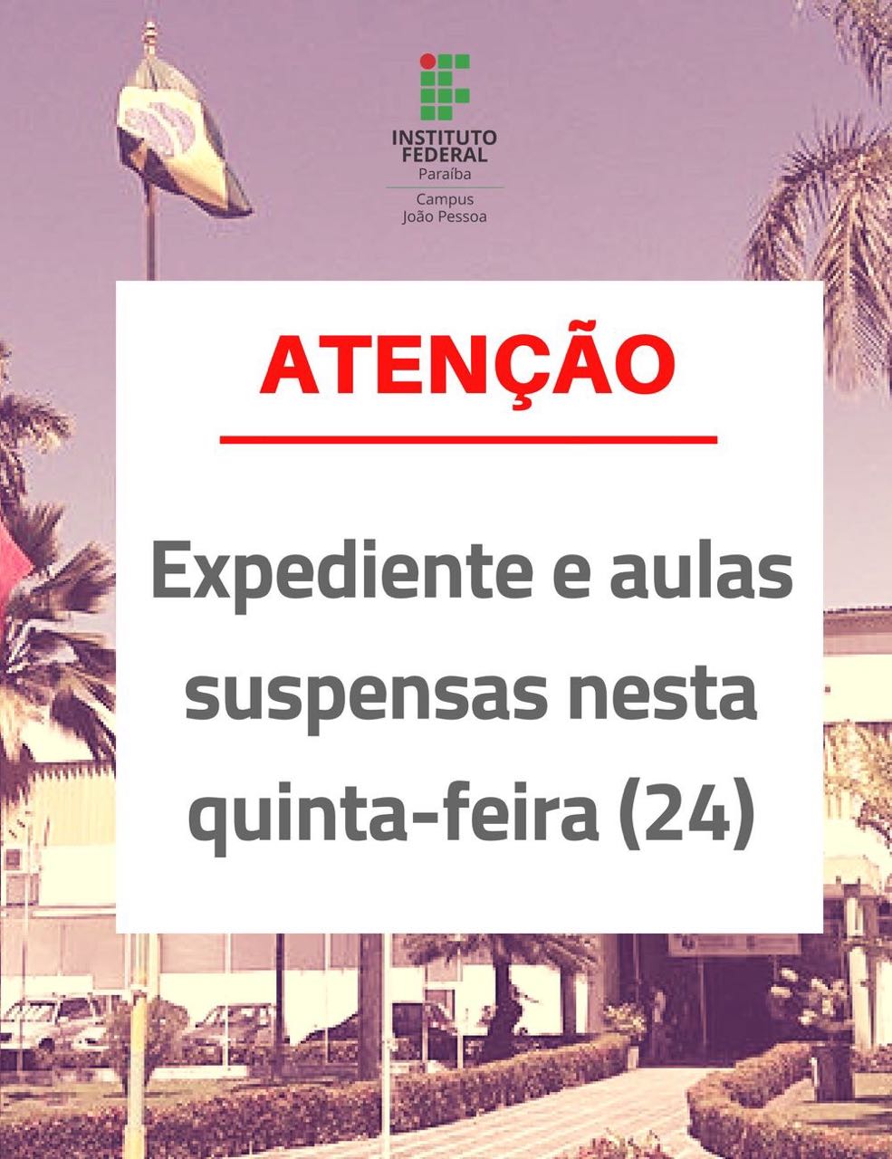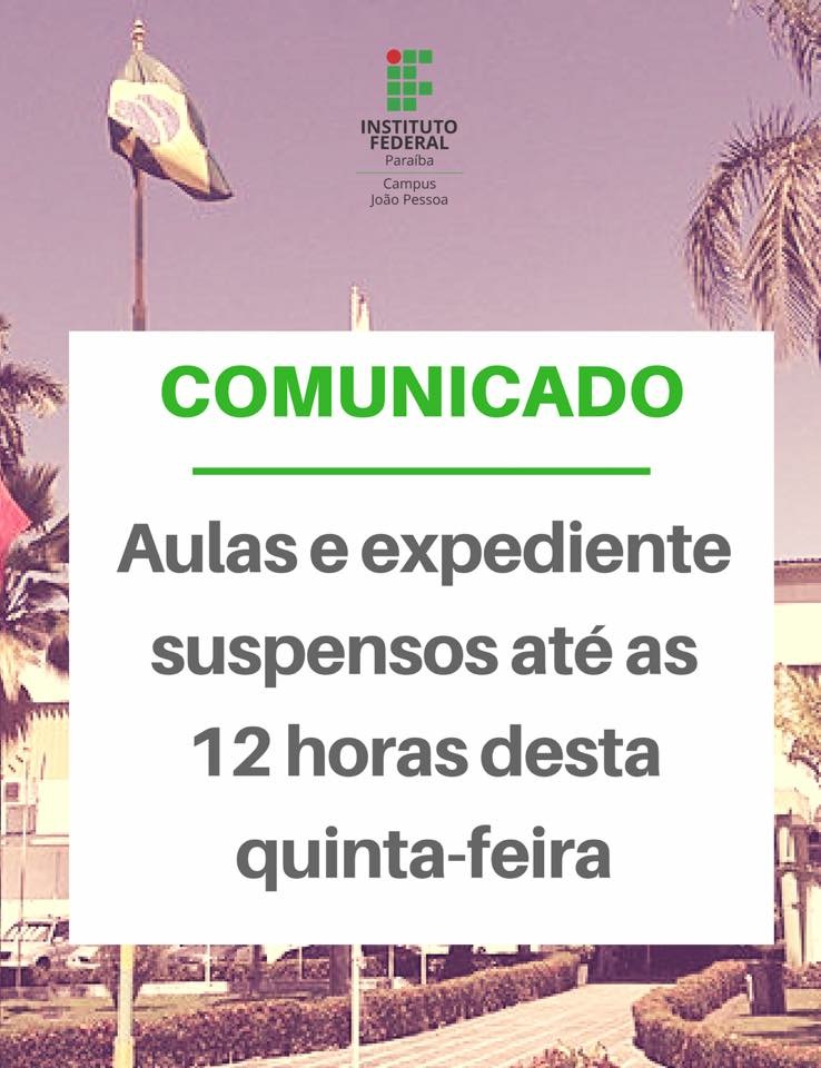 Aulas suspensas no campus João Pessoa até sexta-feira (01)