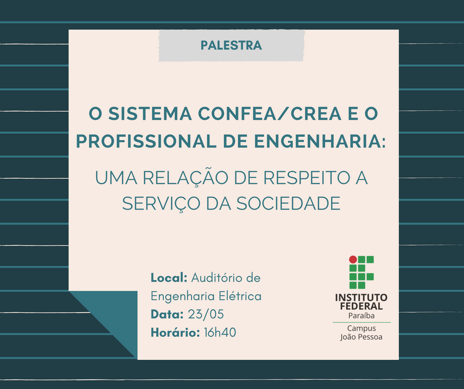 Representantes dos Conselhos Federal e Regional de Engenharia ministrarão palestra no Campus JP