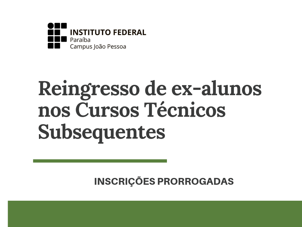 Inscrições prorrogadas para edital de reingresso de ex-alunos do Subsequente
