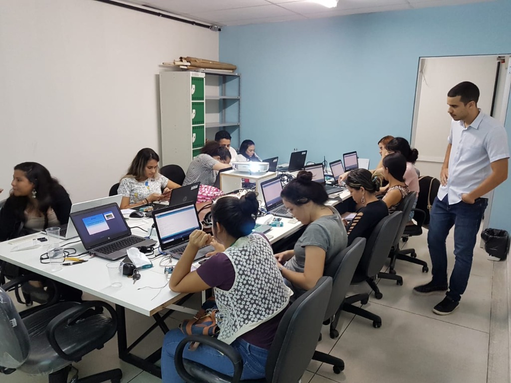 O grupo ministrou um minicurso de Arduino para estudantes do curso de Design de Interiores