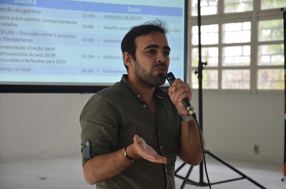 Márcio Carvalho, Coordenador de Planejamento, utilizou atividades práticas para mostrar que o trabalho em equipe é essencial para o sucesso da instituição. Professor Márcio também disse que a partir de 2020 será adotada uma metodologia de gerenciamento ágil no acompanhamento das ações, de forma integrada com as diversas áreas do campus.