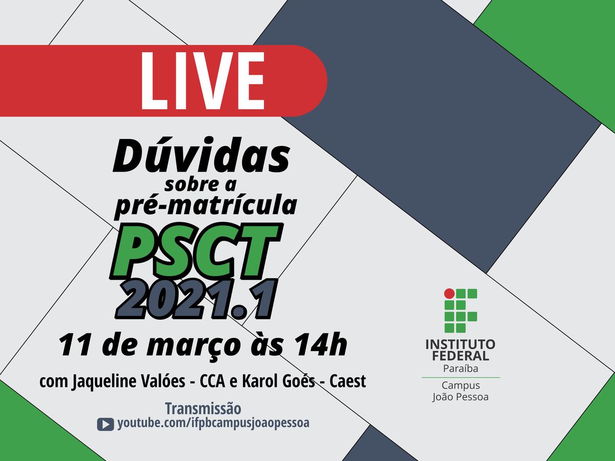 Live abordará pré-matrícula no PSCT 2021