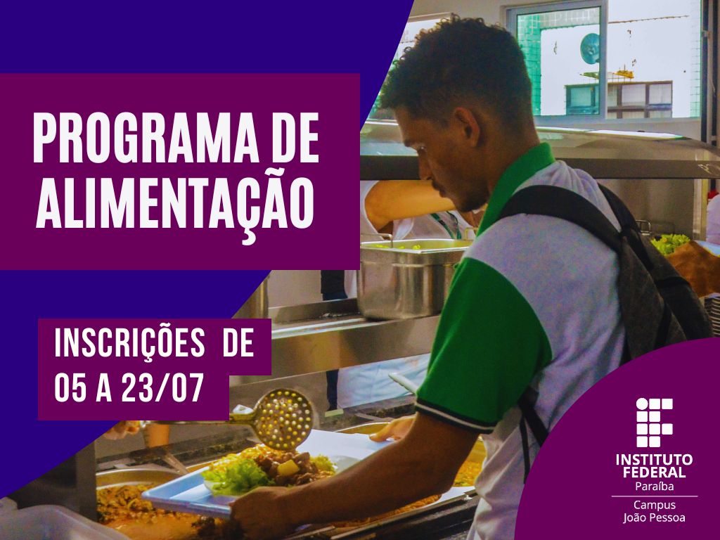 Inscrições abertas para o Programa de Alimentação do IFPB Campus João Pessoa