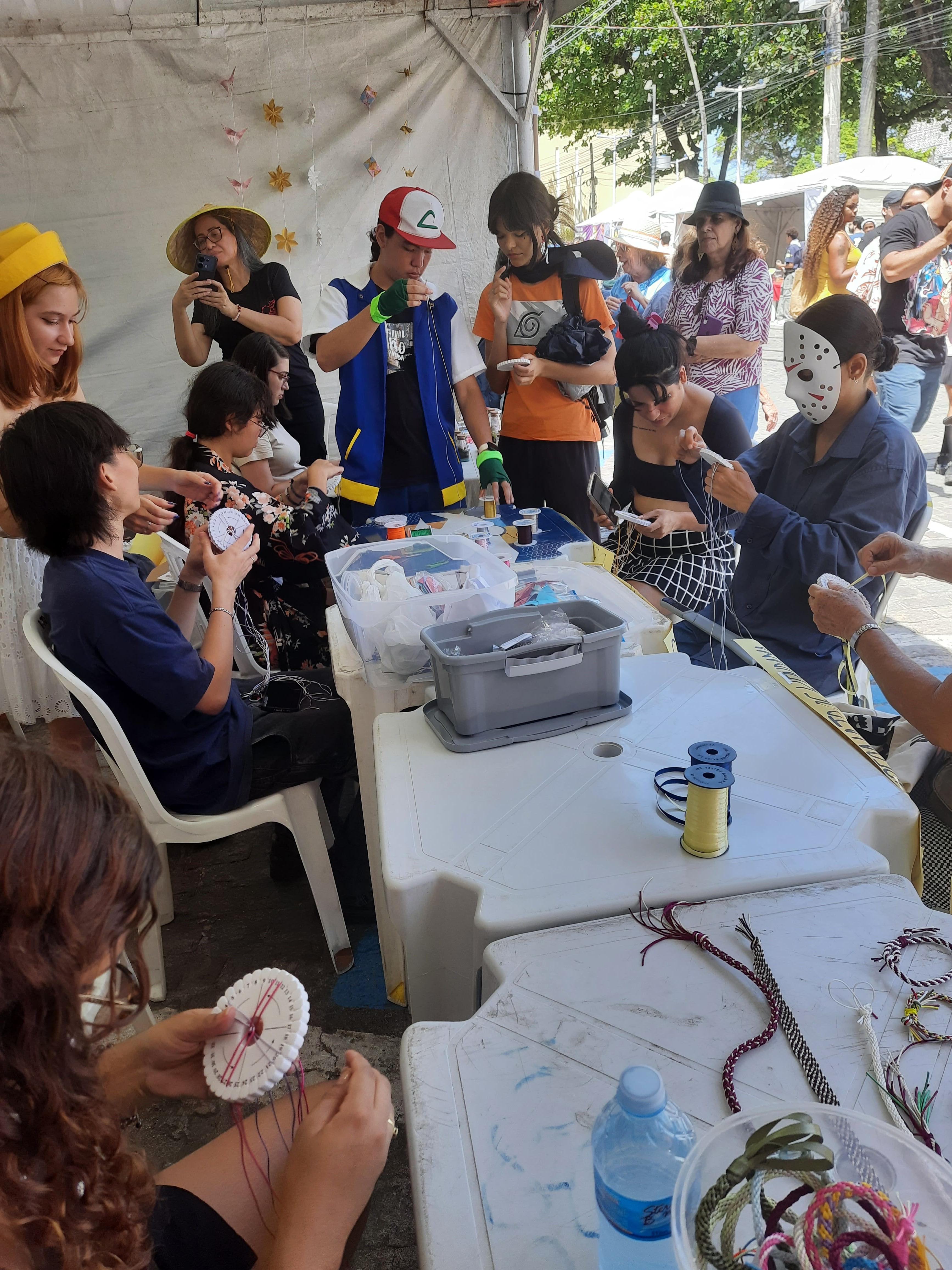 Alunos do curso de extensão em Língua e Cultura Japonesa do IFPB Campus João Pessoa participaram, no dia 30 de novembro, da XXIX Feira Japonesa do Recife, realizada na Praça do Arsenal. Os 18 estudantes foram convidados pelo Consulado-Geral do Japão no Recife para ministrar uma oficina de Kumihimo (trançado de fios de seda) e organizaram dois campeonatos culturais: o de uso do hashi e o de kendama (biboquê).
