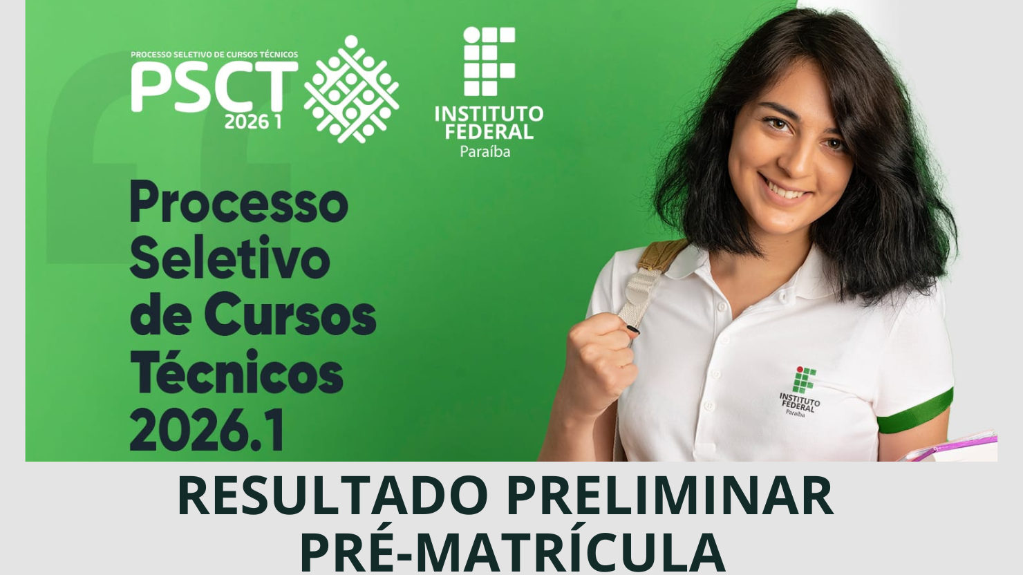 A Diretoria de Desenvolvimento do Ensino do IFPB Campus João Pessoa divulgou, nesta terça-feira (17), o resultado preliminar da pré-matrícula dos candidatos convocados na chamada regular do Processo Seletivo de Cursos Técnicos (PSCT) 2026.1.