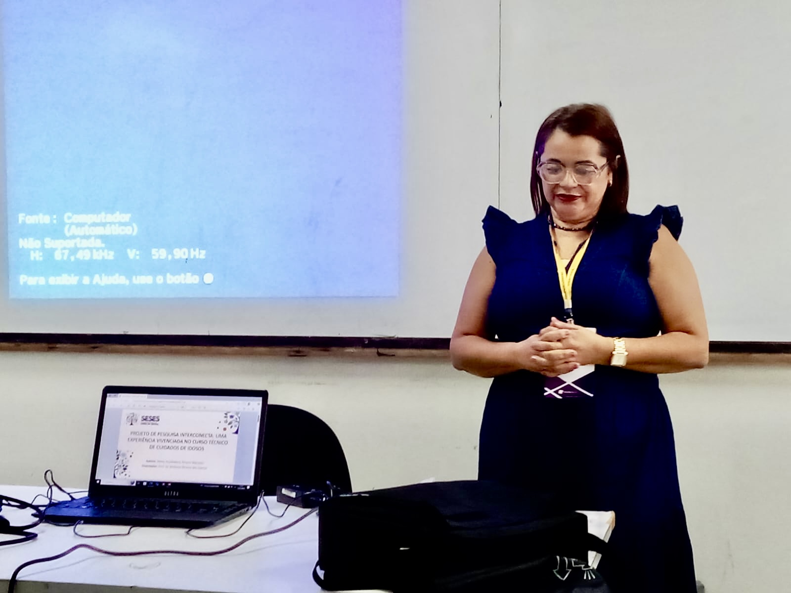 O trabalho foi apresentado por alunos bolsistas do projeto de pesquisa "Interconecta: uma experiência vivenciada no curso Técnico em Cuidados de Idosos"