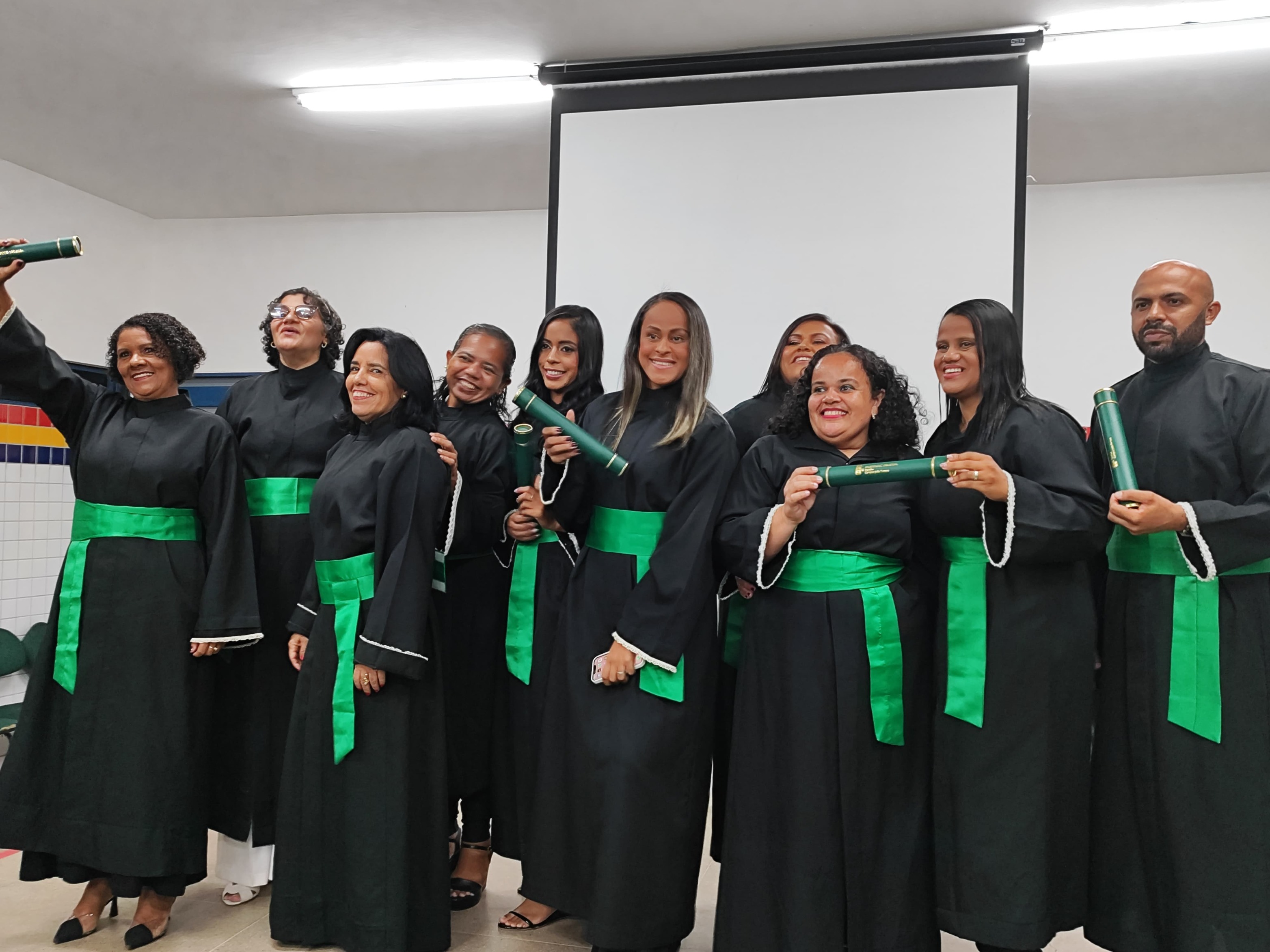 Em uma cerimônia marcada pela emoção, realizada na noite da última sexta-feira, 12 formandos do curso técnico em Cuidados de Idosos do Campus Avançado João Pessoa-Mangabeira receberam seus certificados. A solenidade aconteceu no auditório da Escola Municipal Aruanda, onde o campus funciona de forma provisória.