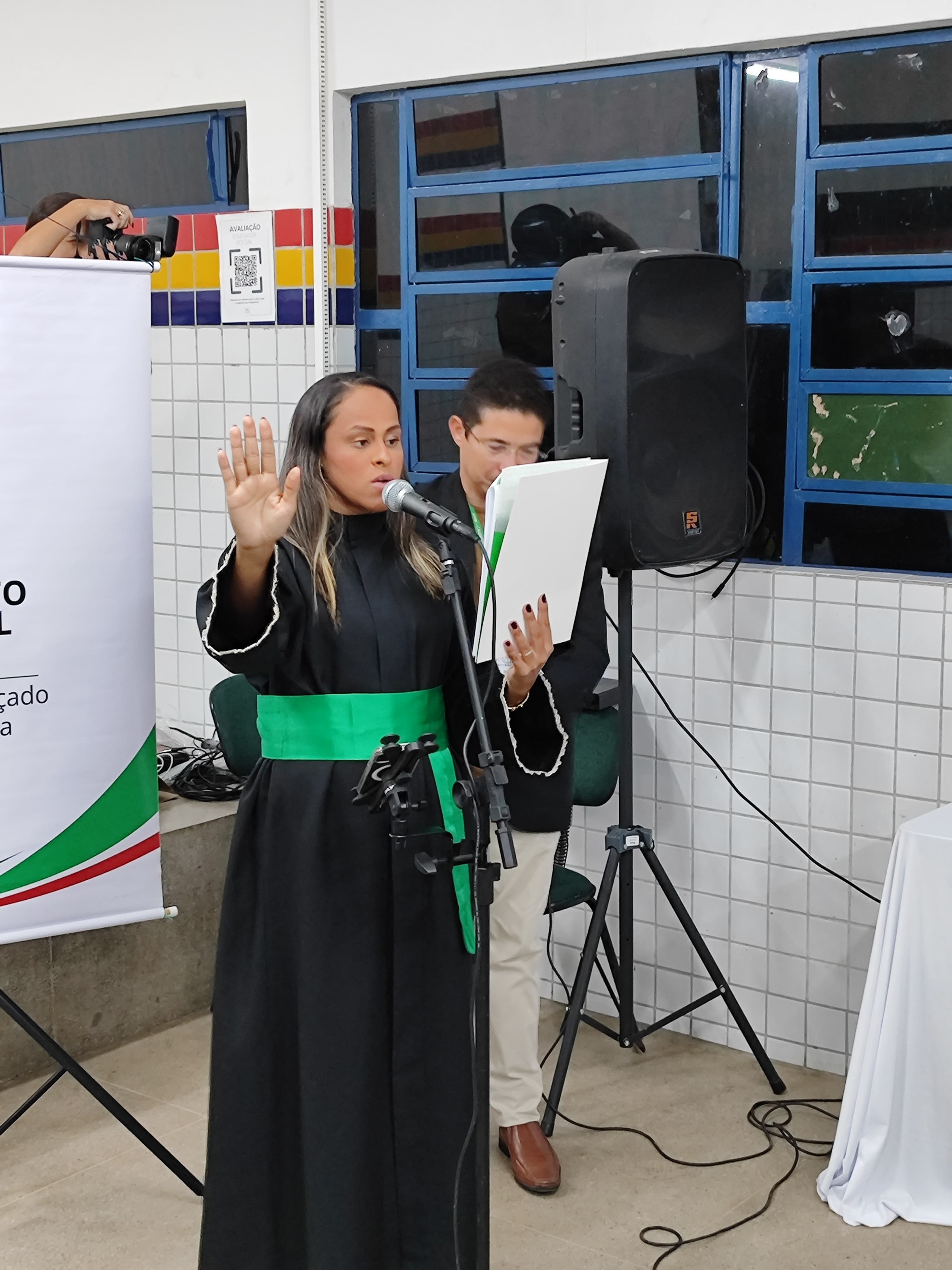 A madrinha da 15ª turma do Curso Técnico em Cuidados em Idosos, do período 2024.2, foi a professora Lucilla Carneiro Gomes. Coube a concluinte Juliana Karla do Nascimento prestar o juramento.