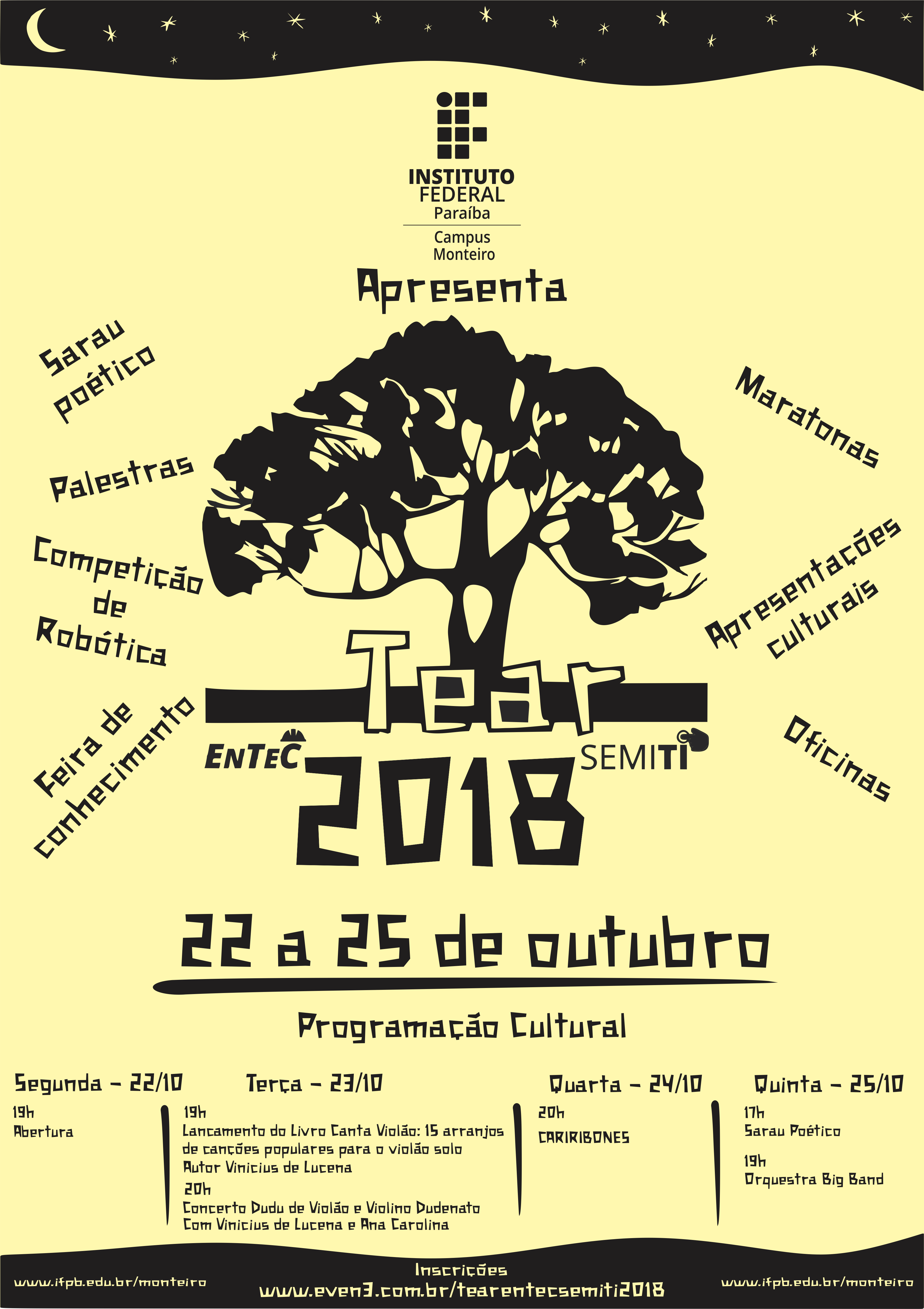 A IV Semana de Tecnologia e Arte (TEAR), o III Encontro de Tecnologia da Construção (ENTEC) e o III Seminário de Tecnologia da Informação e Educação do Cariri (SEMITI) acontecerão de 22 a 25 de outubro,